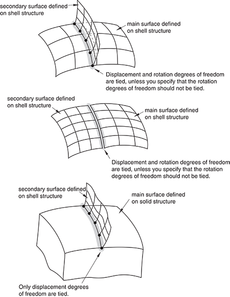 The surface-based tie constraint is imposed in Abaqus/Standard by eliminating the degrees of freedom on the secondary surface; therefore, nodes on the