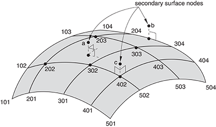 secondary and main surfaces used in the constraint (see About Surfaces):