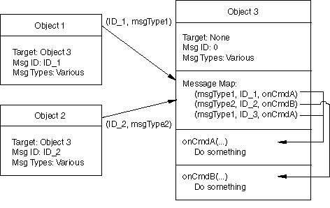 The target/message system is in contrast to, for example, Motif’s callback mechanism. All widgets can send and receive messages from any other widget. A message consists of two components: