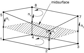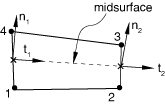 bottom and top surfaces of the element. This midsurface passes through the
