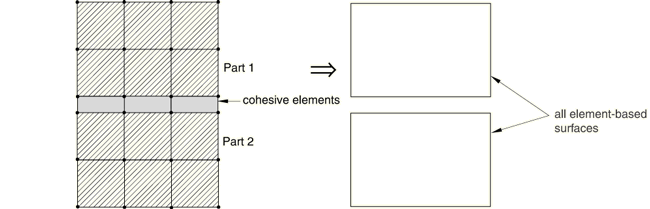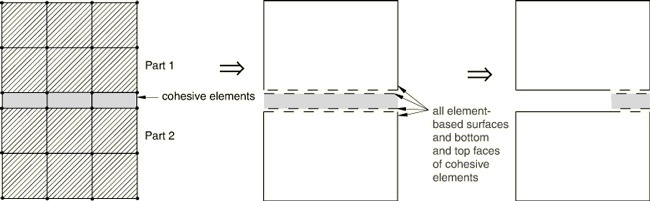 other face is free, the cohesive element exhibits one or (for three-dimensional
