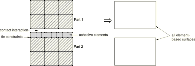 Connecting Cohesive Elements to Other Components by Using Surface-Based Tie Constraints