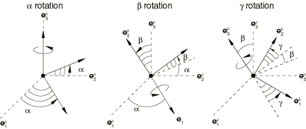 ProductsAbaqus/StandardAbaqus/ExplicitAbaqus/CAE Description![]() The EULER connection does not impose kinematic constraints. An EULER connection is a finite rotation connection where the local directions at node b are parameterized in terms of Euler angles relative to the local directions at node a. Local directions are positioned relative to by three successive finite rotations , , and as follows: