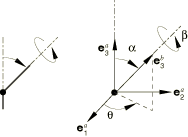 ProductsAbaqus/StandardAbaqus/ExplicitAbaqus/CAE Description![]() The FLEXION-TORSION connection does not impose kinematic constraints. The FLEXION-TORSION connection describes a finite rotation by three angles: flexion, torsion, and sweep (, , and ). However, the flexion, torsion, and sweep angles do not represent three successive rotations. The flexion angle between two shafts measures the angle of misalignment of the two shafts and is always reported as a positive angle. The torsion angle measures the twist of one shaft relative to the other. The sweep angle orients the rotation vector, in the – plane, for the flexion motion. See Figure 1. Since the flexion angle is never negative, the sweep angle may undergo discontinuous jumps by up to radians when the flexion angle passes through zero. An analysis may give inaccurate results or may not converge if any jump occurs in the sweep angle. In general, the sweep angle is not used as an available component of relative motion for which connector behavior is defined. Rather, it is used to define angular dependence for the elastic constitutive response in flexion deformations (as an independent component in the connector elastic behavior definition). Since the sweep angle is restricted to the interval to radians, any dependence on the sweep angle should be periodic, such that the behavior for is the same as . Since is a singular point for which the sweep angle is not uniquely defined, it is strongly recommended that any connector behavior that defines flexural moment versus flexion angle gives zero moment at zero flexion angle. If connector behavior is defined in the sweep available component, the sweep moment must be zero at flexion angles and . The FLEXION-TORSION connection is similar to a finite successive rotation parameterization 3–2–3. However, in terms of the 3–2–3 parameterization, the sweep angle is the first rotation angle, the flexion angle is the second rotation angle, and the torsion angle is the sum of the first and third rotation angles. The first shaft direction at node a is , and the second shaft direction at node b is . Let the two shafts form an angle , called the flexion angle. Then, The flexion angle is a rotation by about the (unit) rotation vector The torsion angle between the two shafts is defined as where positive torsion angles are rotations about the positive -direction, and m is an integer. The sweep angle measures the angle from to the projection of onto the – plane. With this definition It follows that the flexion rotation vector, , can be written A singularity in the definition of the sweep angles occurs when the flexion angle vanishes. In this case ; that is, the torsion and sweep angle axes are coincident, and the two angles are no longer independent. When , the sweep angle is assumed zero, . The available components of relative motion , , and are the changes in the flexion, torsion, and sweep angles and are defined as where and are the initial flexion and torsion angles, respectively. The initial value of the sweep angle is chosen to be zero if the shafts align initially. The connector constitutive rotations are The kinetic moment in a FLEXION-TORSION connection is determined from the three component relationships: Summary