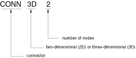 For example, CONN2D2 is a two-dimensional, 2-node connector element.