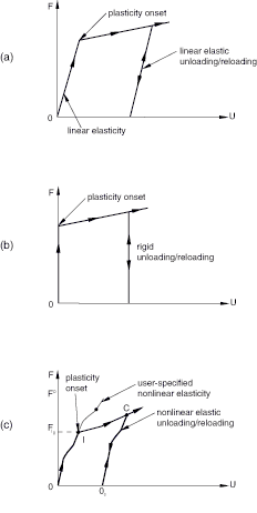 Figure 1. Linear elastic-plastic (a), rigid plastic (b), and nonlinear