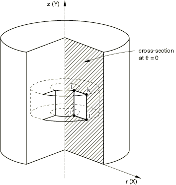 Figure 2. Reference cross-section and element in an axisymmetric solid.