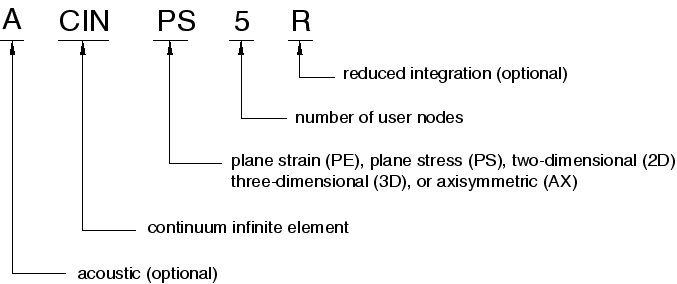 For example, CINAX4 is a 4-node, axisymmetric, infinite element.