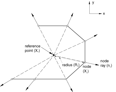 Figure 1. Reference point and node rays for acoustic infinite elements.