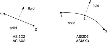 User-specified acoustic interface elements are also useful in problems involving only an acoustic medium because they allow you to specify displacement, velocity, or acceleration boundary conditions directly on the nodes of the acoustic interface elements. In this application, however, you must be aware that the tangential displacements are not coupled to the fluid. Therefore, zero-energy modes may arise involving the displacement degrees of freedom if these nodes are not constrained in the tangential direction. When acoustic interface elements are used to couple fluid and solid elements, this problem does not arise because of the stiffness and inertia of the solid.
