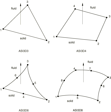 The acoustic interface elements are used in simulations where the motion of a solid structure influences the pressure in the acoustic fluid, such as when the vibrations of a car frame produce noise in the passenger compartment; or where the pressure in the fluid affects a neighboring structure, such as when the small-amplitude sloshing of a fluid inside a container affects its response.