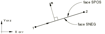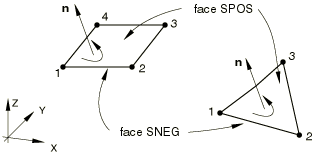 outward normal is referred to as SPOS. The face on the opposite side is referred to as SNEG. The positive normal direction for each element is defined below.
