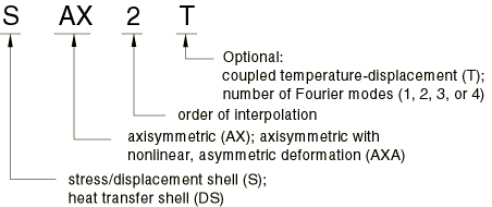 For example, DSAX1 is an axisymmetric, heat transfer shell element with first-order