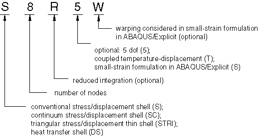 For example, S4R is a 4-node, quadrilateral, stress/displacement shell element