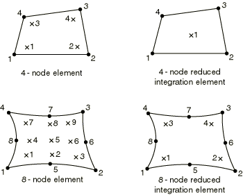 r–z plane, reduced integration in