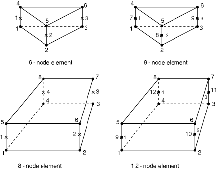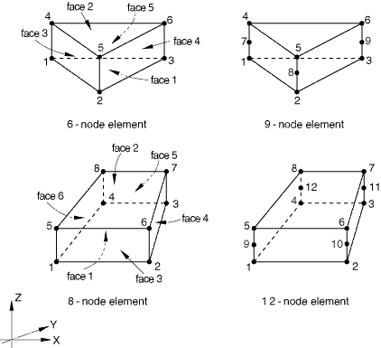 1, 2, 3, 11 at nodes on the top and bottom faces