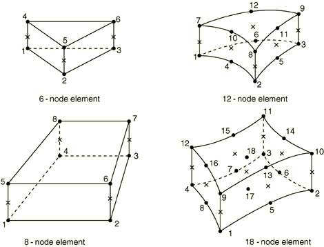 bottom face nodes, except that the point between nodes 17 and 18 in the 18-node
