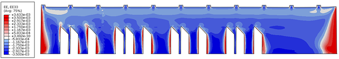 of every eighth layer to reduce the size of the output database. Stress (S) and elastic strain (EE) are requested at the end of printing and after cutting. You