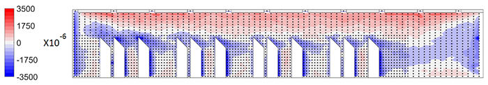 The temperature field of the transient heat transfer analysis is then used to drive a subsequent