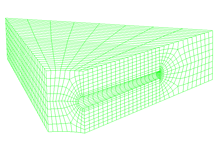 shows the finite element model. The rock is modeled with C3D8P elements, and the well's casing is modeled with M3D4 elements.