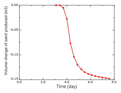 wellbore: rezone analysis. Figure 10. Total sand production volume per unit of depth.
