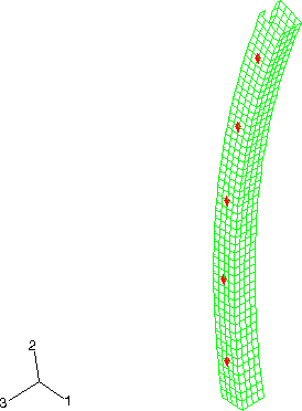 A Python script is included that reproduces the model using the Scripting Interface in Abaqus/CAE. The script creates and assembles Abaqus/CAE parts and uses discrete fasteners to model the spot welds. The script creates an Abaqus/Standard model that is ready to be submitted for analysis from the Job module. The discrete fasteners created by the script result in the following differences compared with the mesh-independent, or point-based, fasteners used by the example input files: