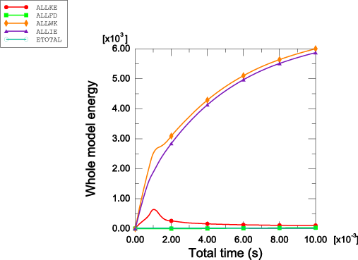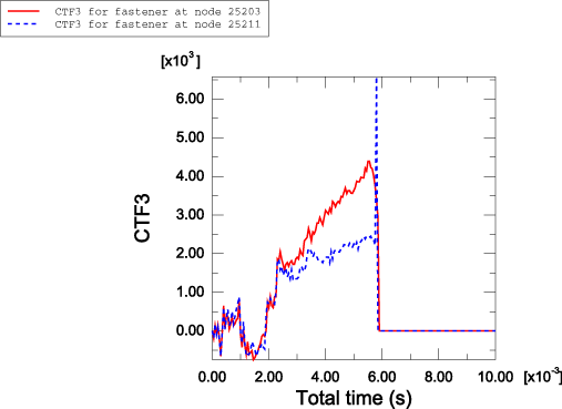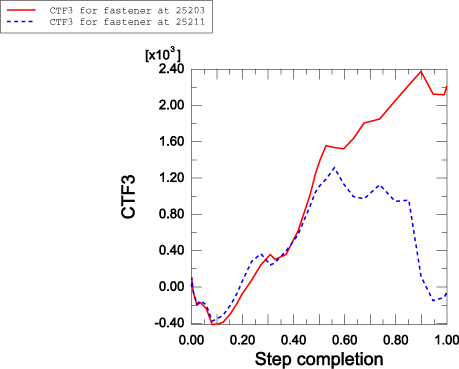 When you submit the Abaqus/CAE job for analysis, the discrete fasteners created by the Python script generate coupling constraints and distributing coupling constraints in the input file, together with connector elements. The example input files use mesh-independent fasteners to model point-based fasteners using connector elements.