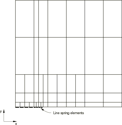 This example shows the use of line spring elements and the shell-to-solid submodeling technique to model a plate with a part-through crack.