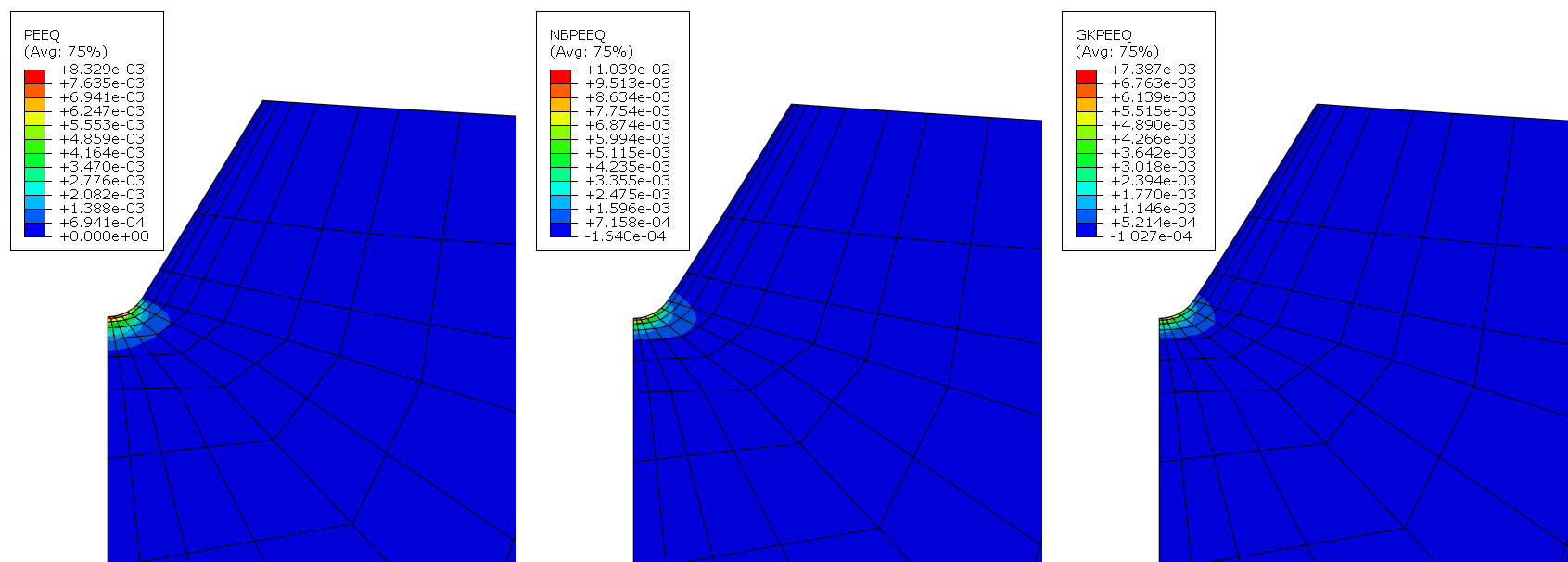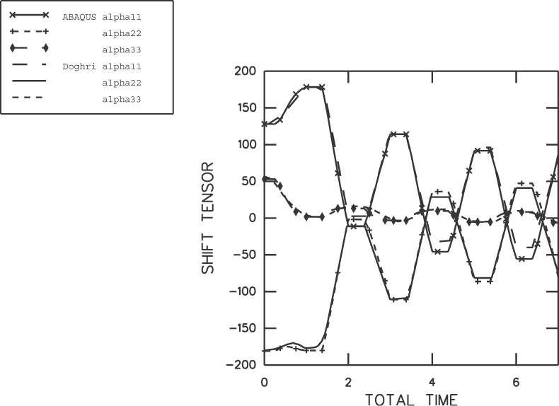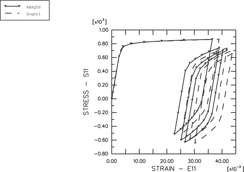 The material used for this simulation is cold rolled. This work hardened state is represented by specifying an initial equivalent plastic strain = 0.43 (so that = 411 MPa) and an initial backstress tensor
