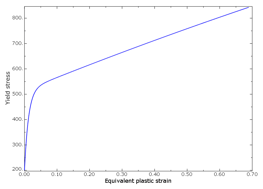 The isotropic hardening behavior of this material is modeled with the exponential law