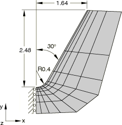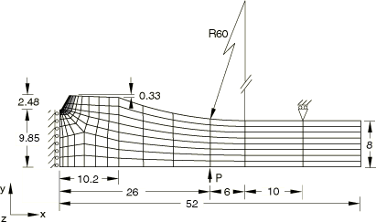 A Young's modulus of E= 210 GPa and a Poisson's ratio of = 0.3 define the elastic response of the material. The initial yield stress is = 200 MPa.