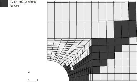 This mechanism can occur simultaneously with the other two criteria; hence, a separate failure index is used. Shear stresses are no longer supported after the failure index exceeds 1.0, but direct stresses in the fiber and transverse directions continue to be supported.
