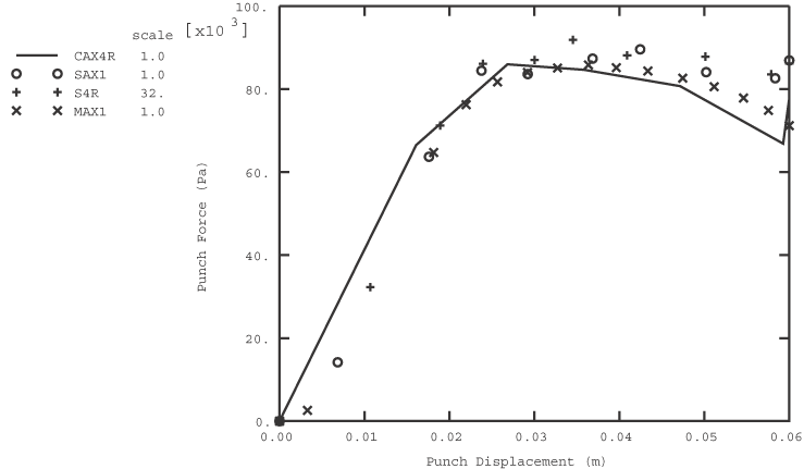 contact formulation. Figure 6. Comparison of punch force versus punch displacement with S4R elements