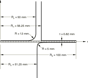 thickness of 0.82 mm. The punch has a radius of 50 mm and is rounded off at the
