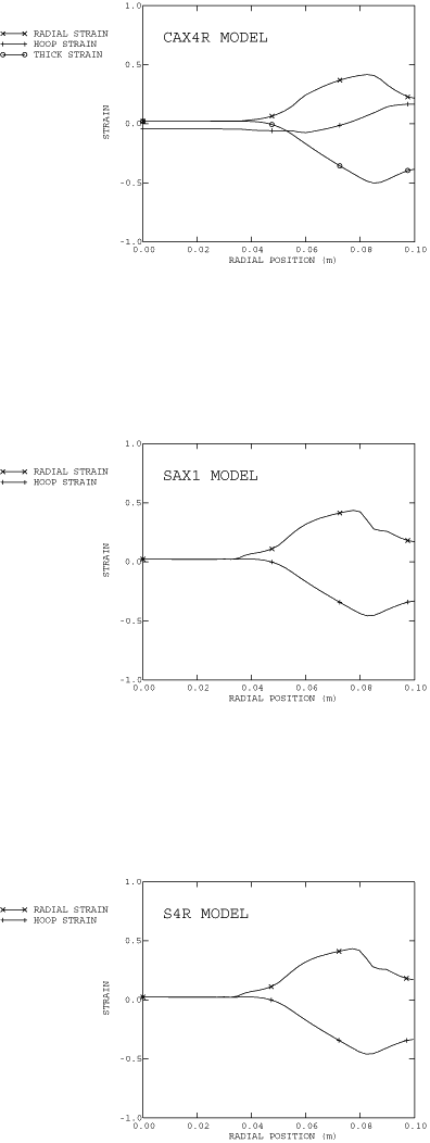 the shells as S11 being the stress in the meridional plane and S22 the hoop stress. There should be no in-plane shear, S12, in this problem. A transformation is used in the S4R and S4 models to impose boundary constraints in a cylindrical system.