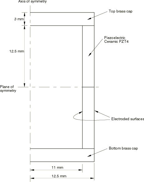 This problem is identical to the one discussed in a report by Mercer et al. (1987). The structure is shown in Figure 1 and consists of a piezoelectric material PZT4 with brass end caps. The piezoelectric material is electroded on both the inner and outer surfaces.