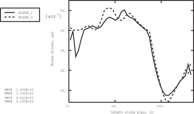 ELBOW31 elements are shown in Figure 7 through Figure 9. Figure 7 shows the variation of the von Mises stress along the length of the piping system. The