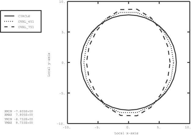 surface of the elements (section point 1). Figure 9 shows the ovalization of elements 451 and 751. A nonovalized, circular cross-section is