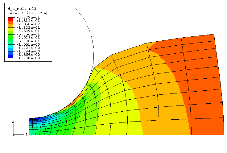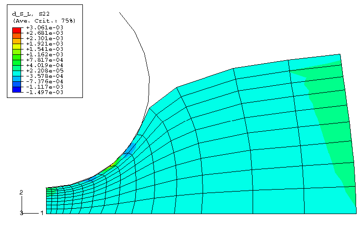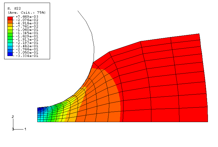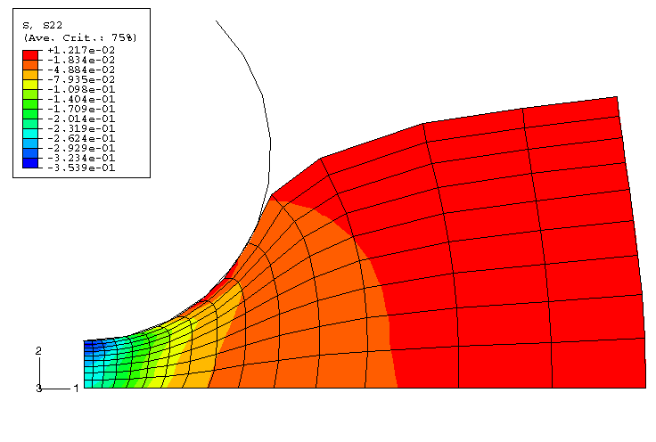 Abaqus/Standard. Figure 5. S22 contour plot of viscoelastic foam: Case 1,