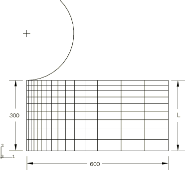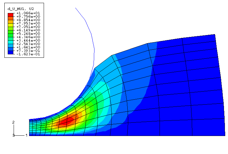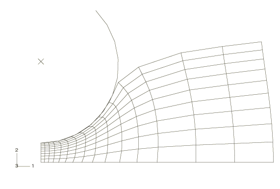 thickness of 300 mm. The punch has a radius of 200 mm. The bottom nodes of the
