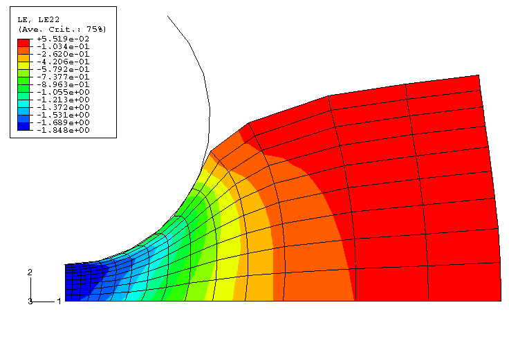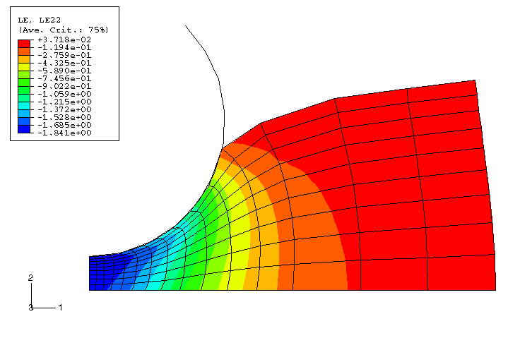 Abaqus/Standard. Figure 6. LE22 contour plot of viscoelastic foam: Case 1,