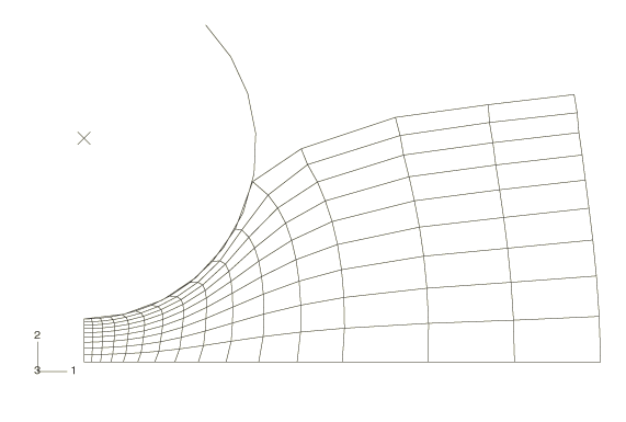 The axisymmetric model (135 linear 4-node elements) analyzed is shown in