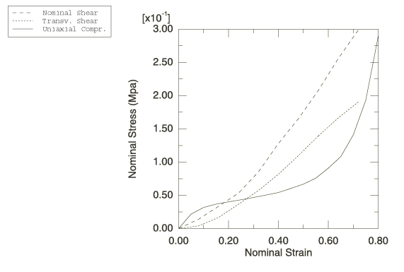 uniaxial compression and simple shear data stress-strain curves are shown in