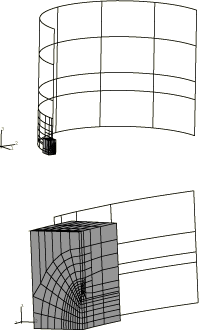 which uses the shell-to-solid submodeling capability, is included. This C3D20R element mesh allows the user to study the local crack area using