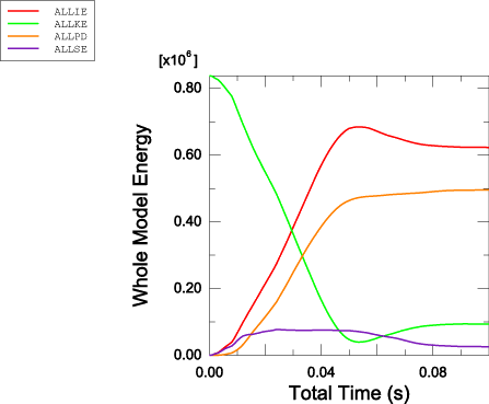 In the input file knee_bolster_nsm.inp the upper body mass is distributed over the hip bones (B31 beam elements) as a nonstructural mass instead of point masses. The nonstructural mass contribution to an element increases both the element mass and the element rotary inertia, thus resulting in an increased stable time increment. This analysis completes in about 40% fewer increments when the nonstructural mass feature is used since the time increment for the problem is controlled by the beam elements. In the input file knee_bolster_massadjust.inp, the upper body mass is distributed over the hip bones using mass adjustment instead of point masses. The mass distribution and analysis results are similar to those using nonstructural mass. Input files for similar analyses using pipe elements (PIPE31) instead of beam elements are included.