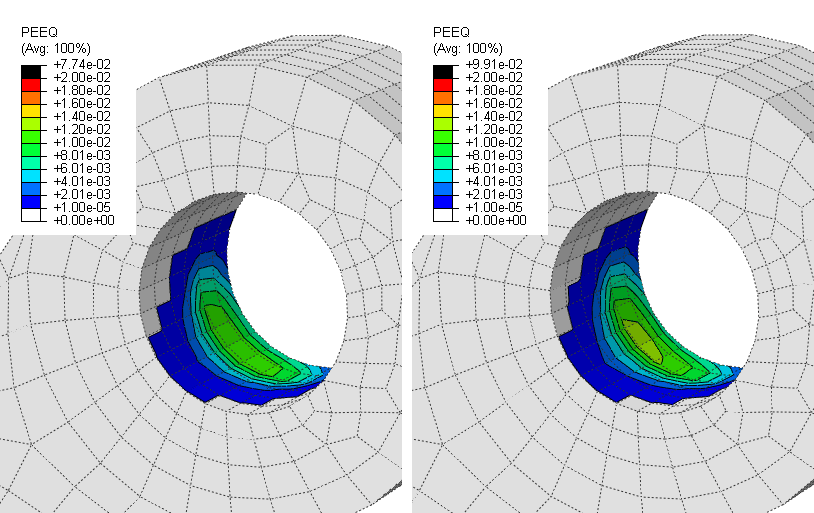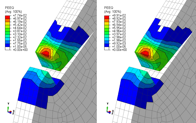 The materials considered in this example are assumed to have linear elastic, perfectly plastic behavior except for the support, which is considered rigid with fixed position. The deformable bodies have an elastic modulus of 21 × 104 MPa, Poisson’s ratio of 0.3, and density of 7.9 × 10−9 tonne/mm3. The yield strength of the pawl is 600 MPa, and the yield strength of the other deformable bodies is 800 MPa.