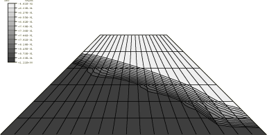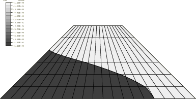 A typical dam is shown in Figure 1. We consider fluid flow only: deformation of the dam is ignored. Thus, although we use the fully coupled pore fluid flow-deformation elements, all displacement degrees of freedom are prescribed to be zero. A more general analysis would include stress and deformation of the dam.