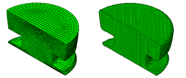 The rivet forming simulation is conducted in Abaqus/Explicit using two fundamentally different element formulations. The traditional