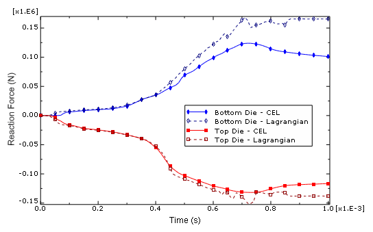 CEL model (bottom). Figure 10. Reaction forces in the forming dies.