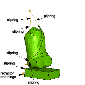 The SLIPRING connector models the stiff cable to which the waist buckle is attached. Its length shortens as the pretensioner device is being triggered.